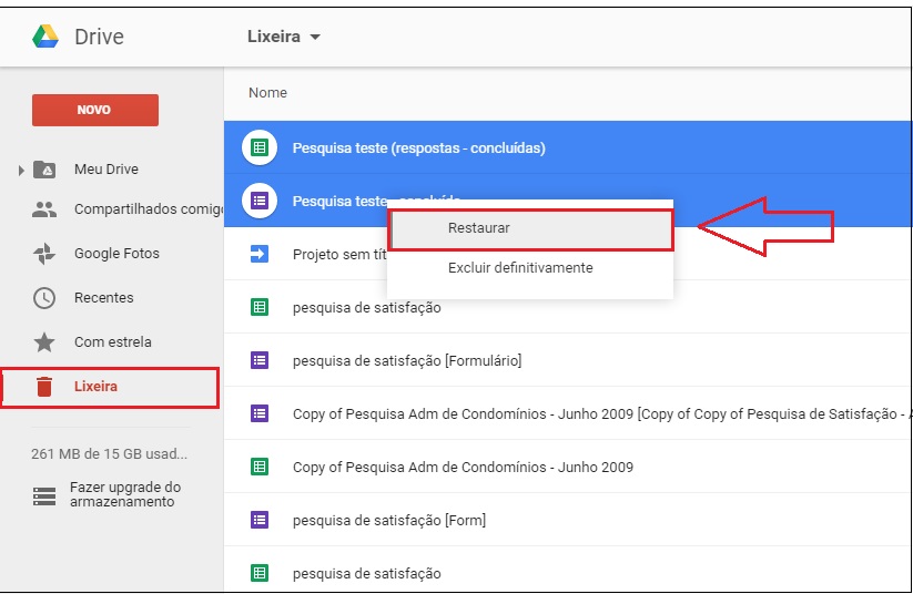 Clique em uma data/horário para ver como o arquivo estava em um dado momento.