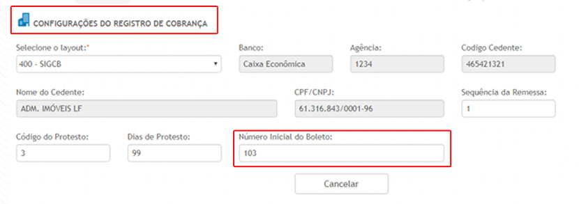 • Implementada a sequência desvinculada do número do boleto para o registro de cobrança. Com essa implementação, o usuário poderá dar continuidade na geração de boletos a partir da última geração realizada em sistema anterior ao FaciLoca. Basta acessar Configuração > Dados de Cobrança > Dados Para Registro de Cobrança e informar o número da sequência do boleto a ser gerado.
