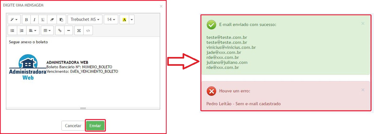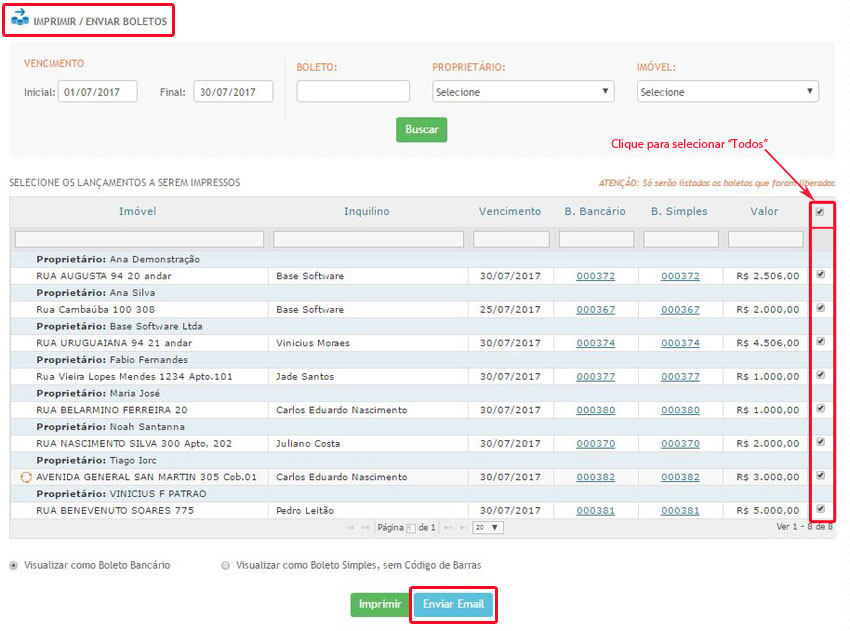 • Implementada a opção de "Enviar boletos, em lote, por e-mail". Essa implementação visa otimizar a rotina dos usuários, no envio de boletos por e- mail para diferentes inquilinos.