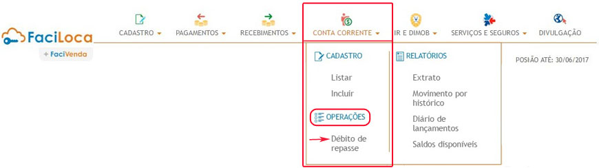 • Implementado "Débito de Repasse ao Proprietário" no menu Conta Corrente > Operações. Essa implementação visa agilizar a rotina de Repasses feitas aos proprietários.