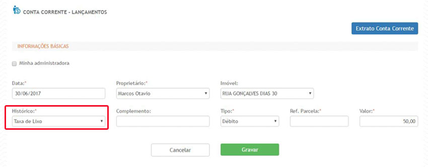 • implementado novo histórico "Taxa de Lixo", para lançamentos em contas a pagar, conta corrente e boleto Avulso.