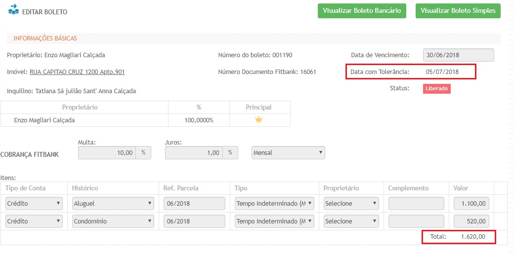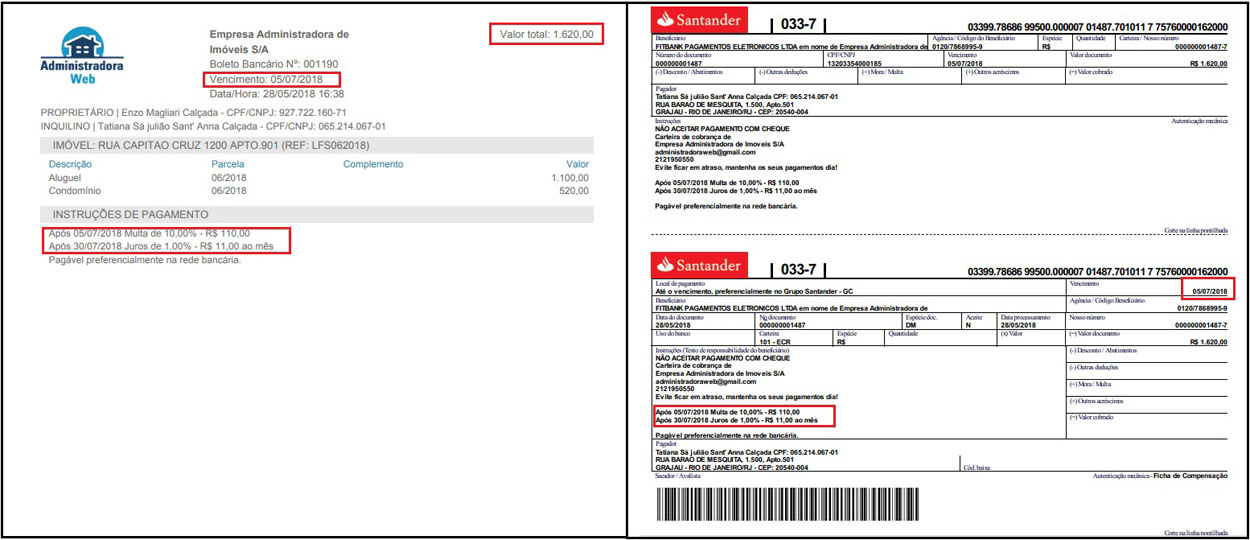 • Implementadas as informações de Multa/juros nas instruções do Boleto FitBank. Com essa implementação, o inquilino saberá quanto irá pagar de Multa/Juros caso realize o pagamento do boleto após o vencimento.