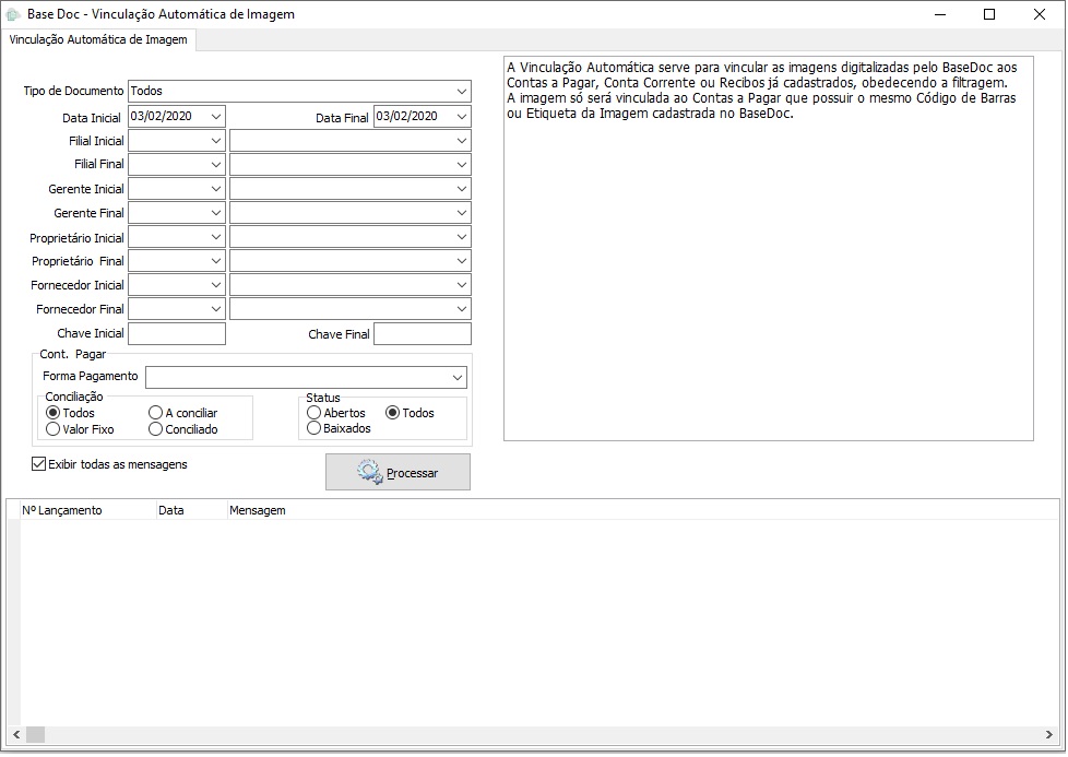 Esse controle se restringe a execução do Base Filtro, não incorporando a transmissão via IExpress. Consulte também a documentação referente aos Alertas do Sistema. |